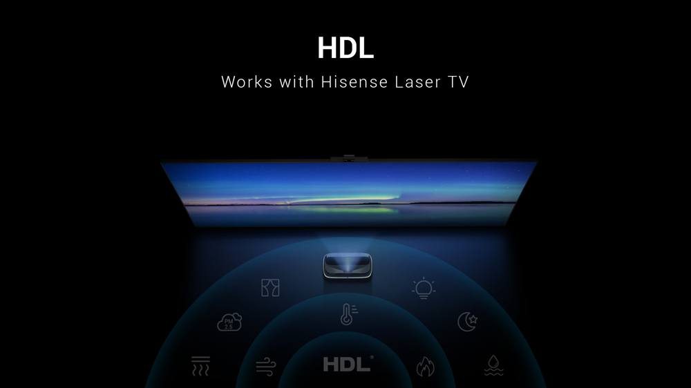 Based on HDL smart home solution, users can control their home devices connected to the smart system directly through audio and video image solution of Hisense Laser TV. In this way, real-time data and notifications collected by HDL smart devices can be automatically displayed on Hisense Laser TV as reminders. For example, once the sensor detects any combustible gas, it will sound an alarm with above 70 decibels. And the system will also send a notification message to the users or Hisense Laser TV to protect you and your family.