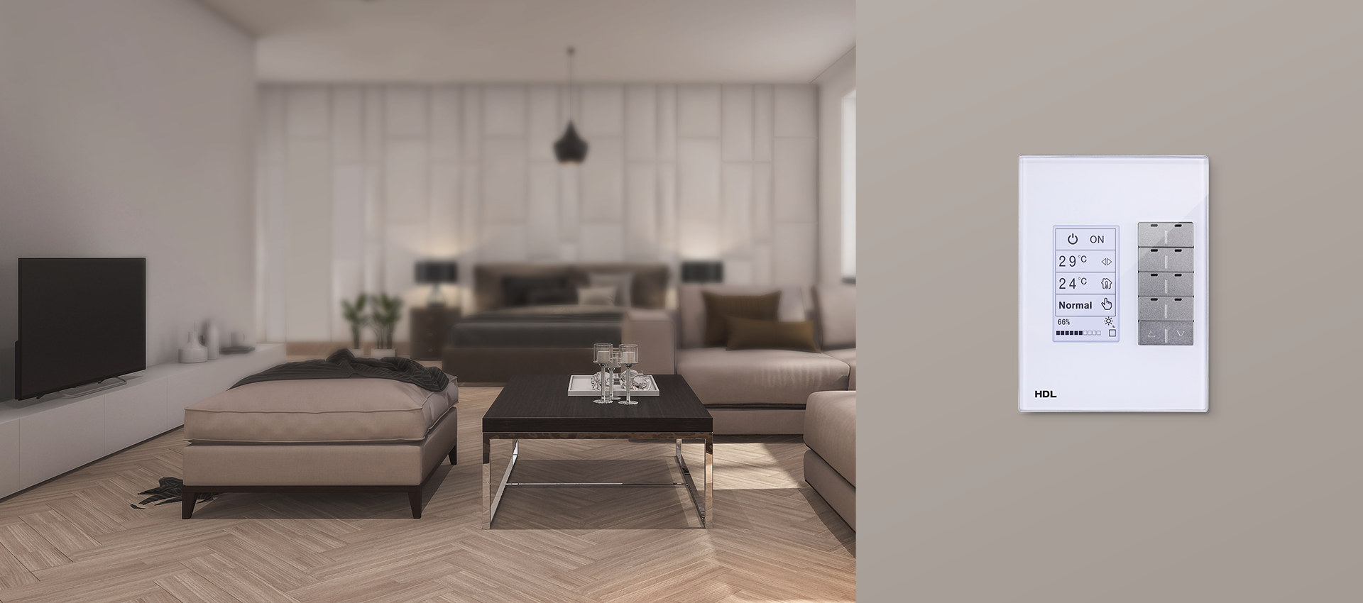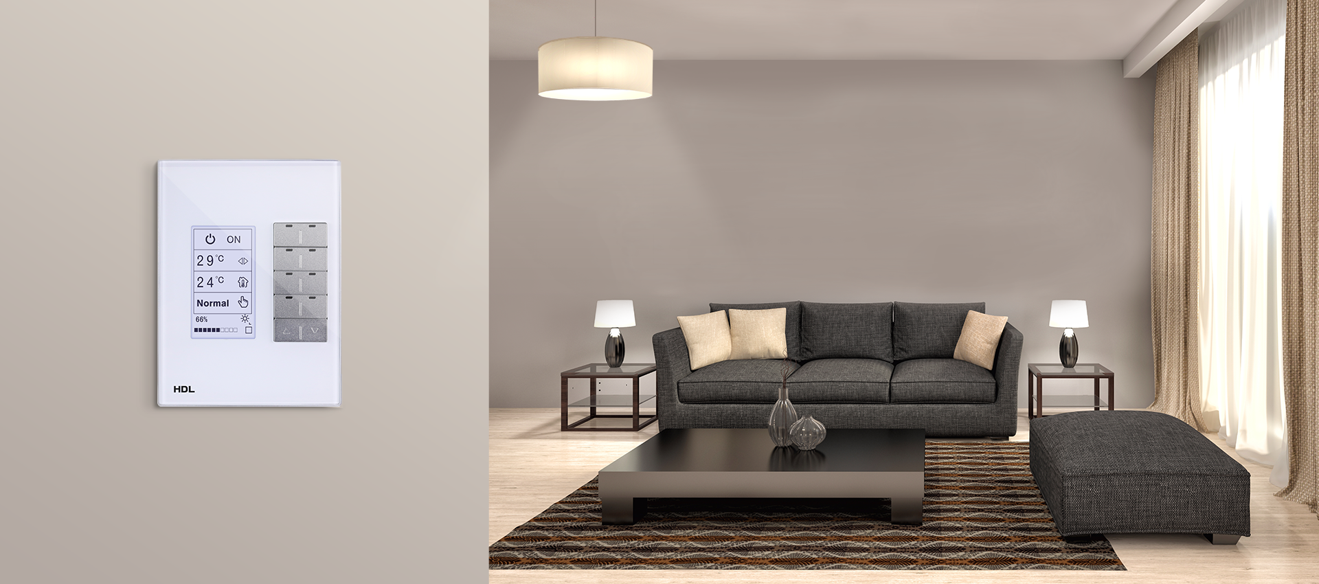 With 10 metal buttons, the DLP panel has the control pages for lighting, shading, HVAC and music. And in four of the general pages, users can change the content in LCD on programming software.