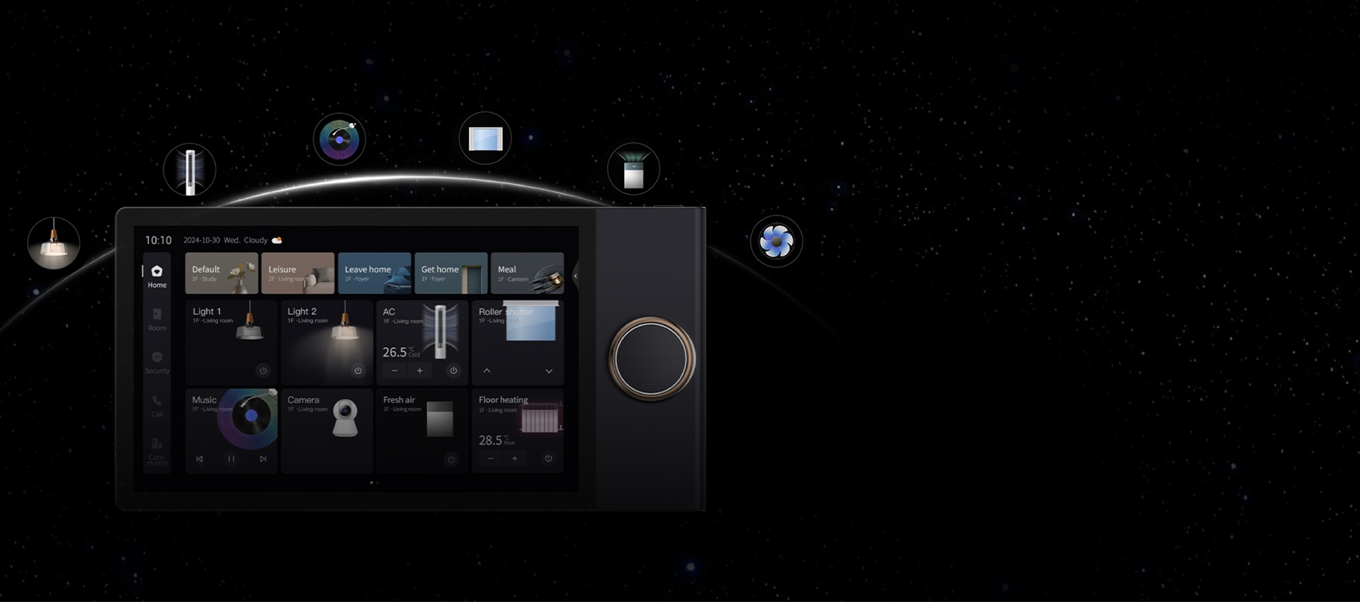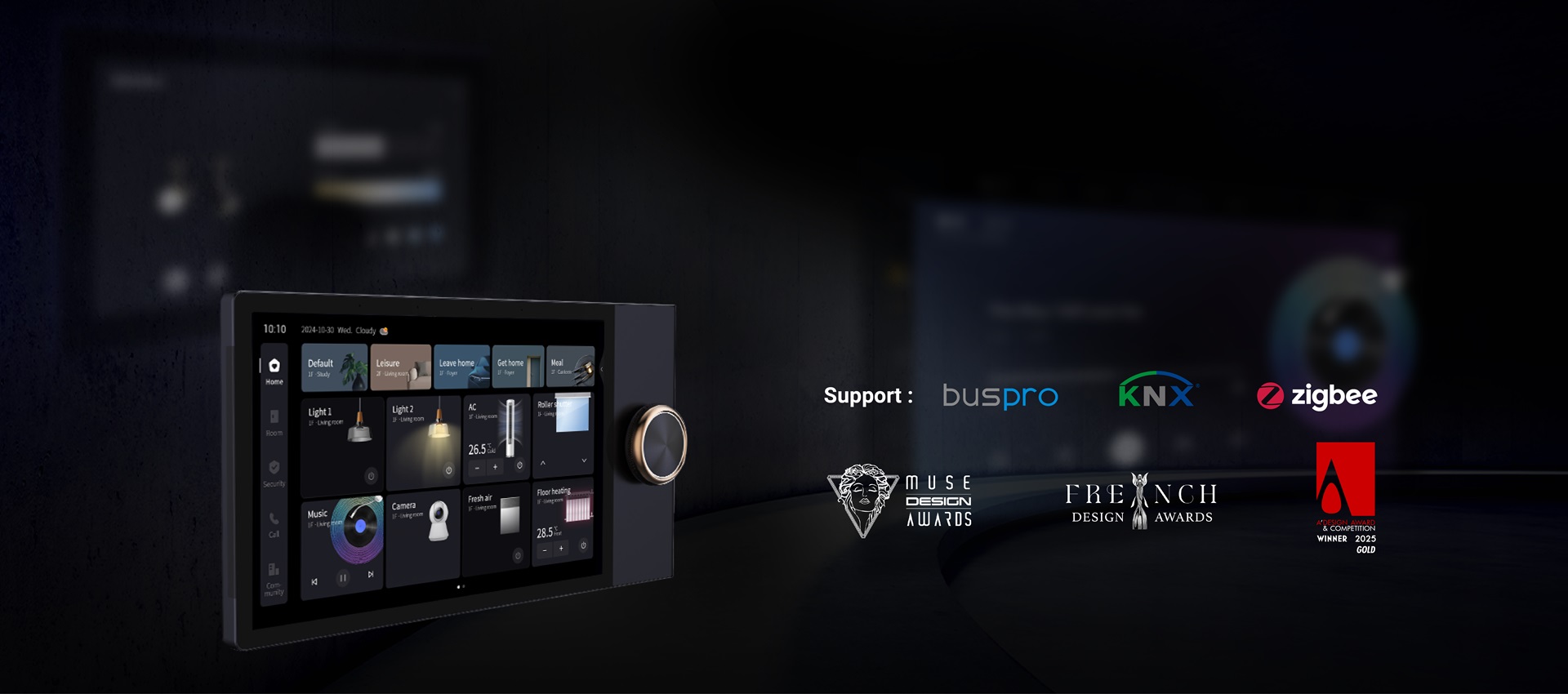 Meet Source 10 - the ultimate central control screen with a 2000x1200 ultra-clear display and an elegant skeuomorphic UI. More than a panel, it combines a gateway, intercom, and smart control in one, designed for premium living.