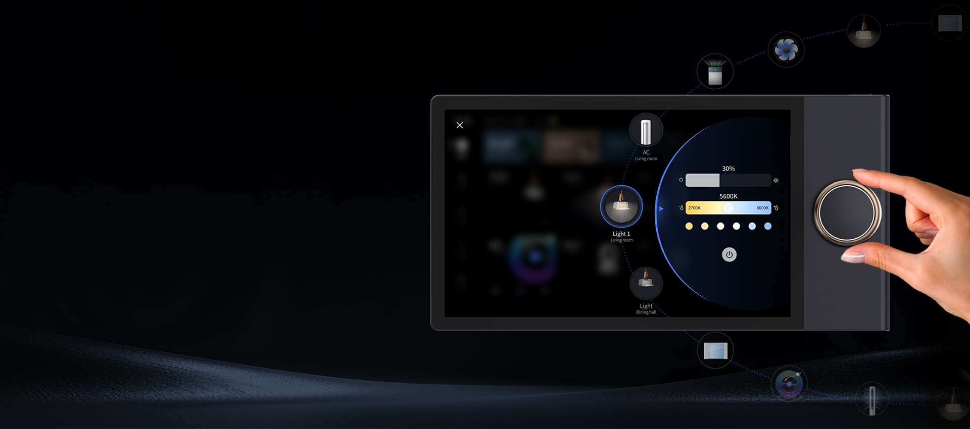 Beyond its elegant appearance, the rotary knob is a versatile control centerpiece. It allows users to quickly access essential functions, such as function selection or mode switching, while offering smooth, continuous control for lighting brightness, curtain position, and air conditioning temperature. Each rotation is a precise, responsive experience, blending design sensibility with everyday convenience.